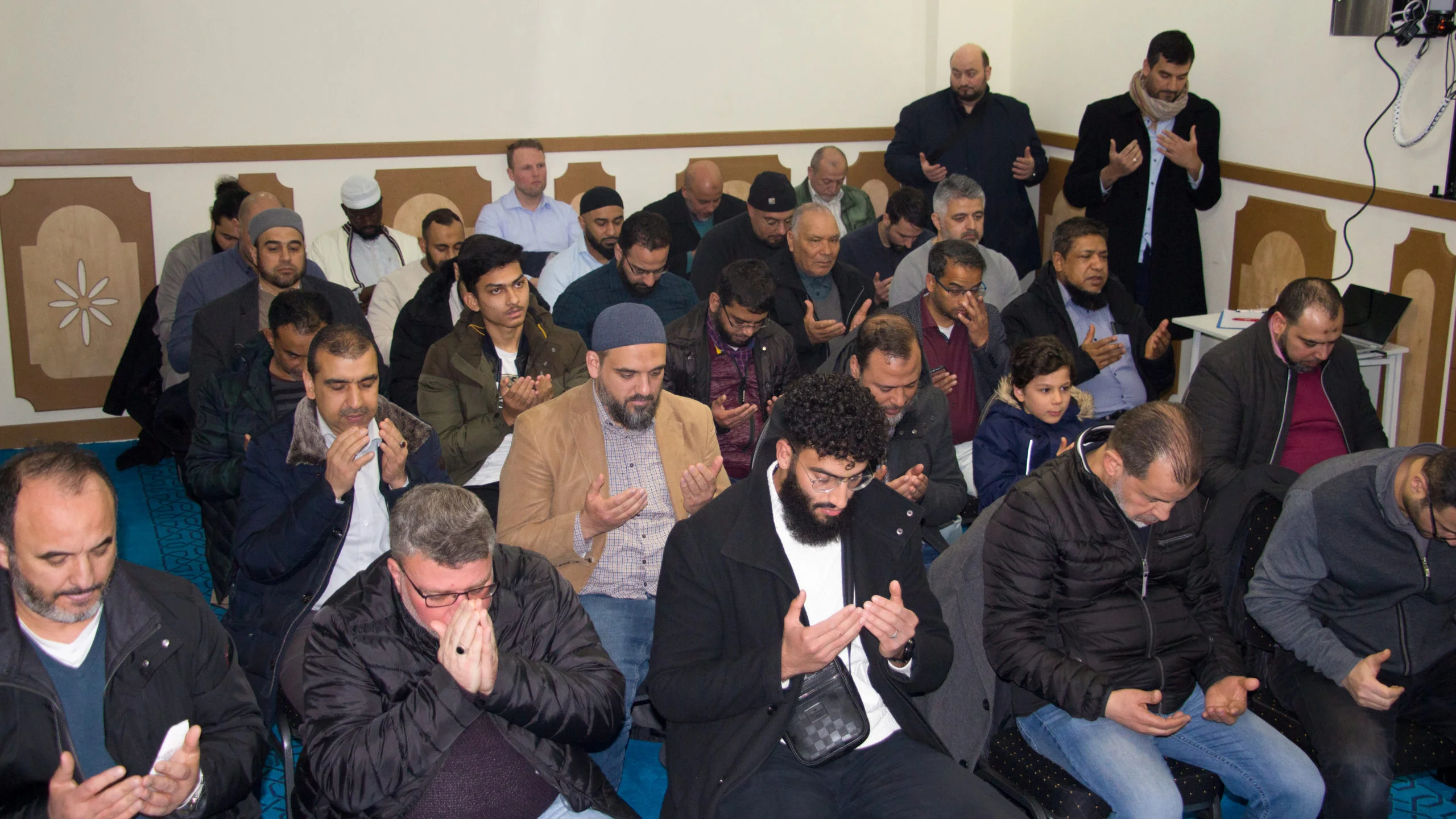Das Freitagsgebet findet in der Winterzeit um 12.30 Uhr auf Arabisch und um 13.15 Uhr auf Deutsch statt. In der Sommerzeit findet es um 13.30 Uhr auf Arabisch und um 14.15 Uhr auf Deutsch statt.