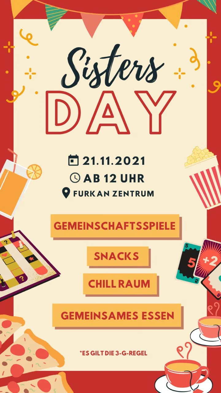 Am 21.11.2021 fand für die Schwestern ein erfolgreicher und spaßiger Sisters Day in der Moschee statt. Zahlreiche Schwestern, Freundinnen und Interessentinnen ermöglichten einen bereichernden Tag mit vielen spannenden Spielen und Aktivitäten voller Spaß und Freude. An diesem Tag wurde neben dem vielfältigen Programm auch für ein gemeinsames Essen gesorgt, was ein buntes Kennenlernen und schöne Gespräche ermöglichte.