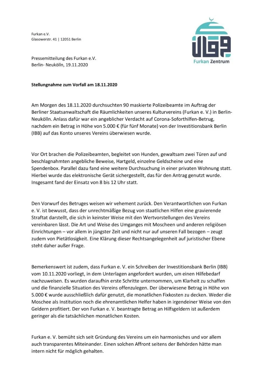 Stellungnahme zur Razzia am 18.11.2020